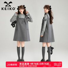 紫涵假两件衬衫背心连衣裙女2025冬季新款复古咖色格纹收腰a字裙