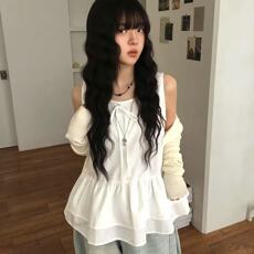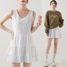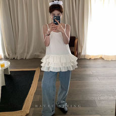夏日小记 芭蕾风裙摆拼接无袖背心裙 百搭显瘦白色荷叶边宽松上衣