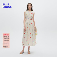 BLUE ERDOS26早春新品休闲百搭莱赛尔混纺背心式收腰褶皱连衣裙女