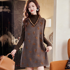 套装连衣裙2025新款女秋冬轻奢高级感长袖打底衫背心裙两件套裙子