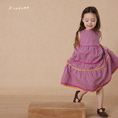 允儿妈女童复古日系格子拼接背心裙宝宝儿童2025夏季洋气连衣裙潮