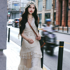 AZure蕾丝绑带吊带手工针织镂空背心罩衫高腰蕾丝蛋糕裙内搭外穿