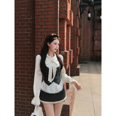 你的懒懒llan【少女舒适区】翻领层次感针织背心+荷叶边半裙套装