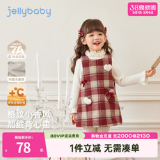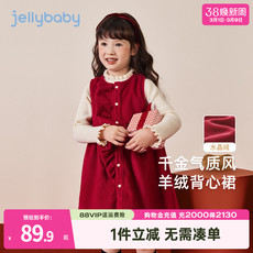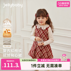 [软糯加绒]女童背心裙秋冬小童连衣裙儿童冬季红色周岁衣服女宝