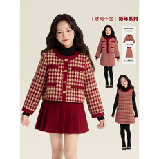 拜年服女童连衣裙秋冬季小女孩背心裙套装儿童过年公主裙子新年装
