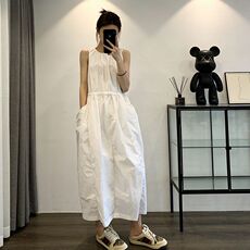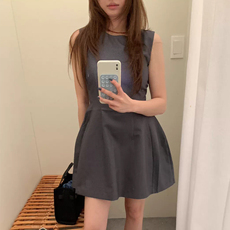 降临2026新款法式纯色无袖背心连衣裙女夏季小众设计感连衣裙