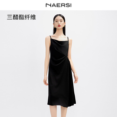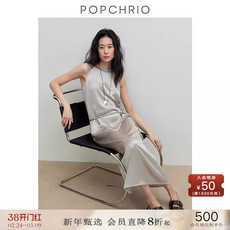 POPCHRIO欧可芮◆醋酸高级感气质缎面挂脖连衣裙中长款背心裙女夏