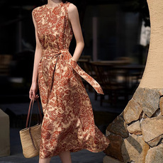 提花真丝背心长裙子复古桑蚕丝吊带连衣裙2025夏季新款女装