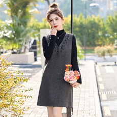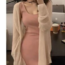 今年流行特惠2026春季新款女装打底针织衫V领背心裙两件套中长款