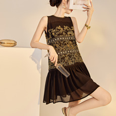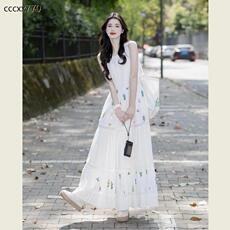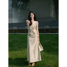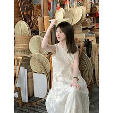 新中式绝美重工绣花假两件背心裙女夏装超好看宽松显瘦度假连衣裙