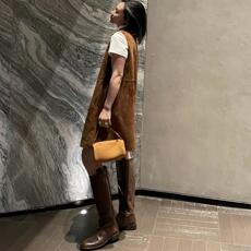 TOFOD 左岸 肯尼亚进口羊反绒连衣裙 老钱风无袖叠穿麂皮背心裙