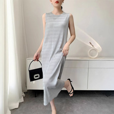 原创褶皱背心连衣裙女2026夏款气质简约修身无袖百褶裙子小众设计