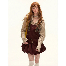泰国潮牌 roserompstudio 黑白拼接假两件短款背心裙