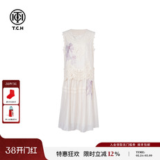 【会员专享】红袖2025春季新款女装香风蕾丝边套头背心连衣裙