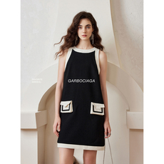 Garbociaga龍喜儿 芬* 醋酸小众洋气撞色圆领口袋背心连衣裙 5436