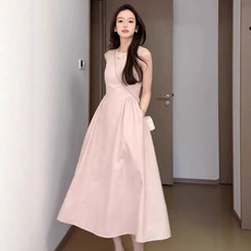法式温柔气质粉色无袖背心连衣裙漂亮独特高级感收腰a字长裙夏季