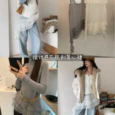 十三行春夏新款3R3百搭蕾丝镂空流苏叠穿背心裙女上衣罩衫配腰带
