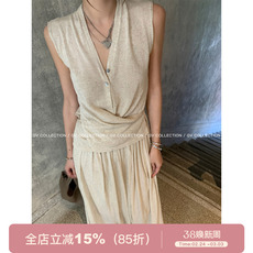 GV大白哥 质感素系 亚麻交叉设计背心半裙套装设计感小众新款
