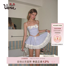 SylCue 辣妹风设计感斜肩无袖背心带飘带挂脖高腰显瘦百褶半身裙