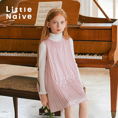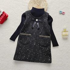 小小家 小个子小码半高领打底衫+针织背心连衣裙套装秋冬显瘦套装