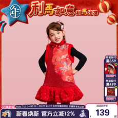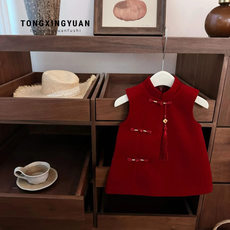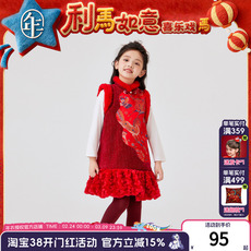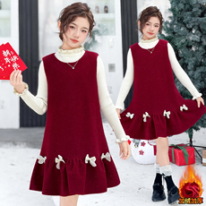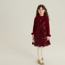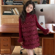 女童秋冬连衣裙生日公主裙韩系新年羽毛亮片背心裙喜庆红色拜年裙