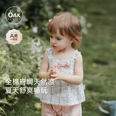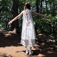 良良家设计感后背镂空系带背心连衣裙女夏季新款拼接木耳边五分裤