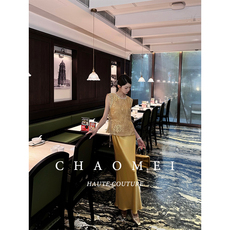 冯(CHAOMEI【鎏金曲】新中式100桑蚕丝刺绣马甲背心+吊带裙套装
