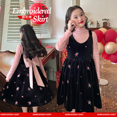 栀了成长记童装女童绣花丝绒连衣裙春秋儿童加绒裙子宝宝背心裙