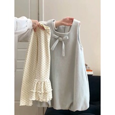 两件套女秋季新款甜美可爱小个子绑带米白色连衣裙+牛仔马甲背心