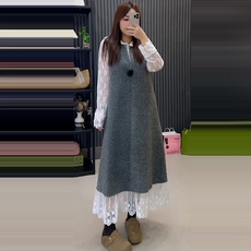 韩版复古文艺温柔红色无袖背心毛衣裙搭配黑色长袖打底衫两件套装