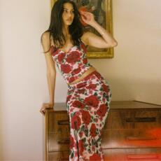 WEIRD PUSS 明艳大女主花朵印花抹胸背心女 修身半身裙辣妹套装潮