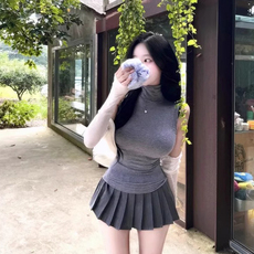 SylCue 未来感赛博风荡领连帽无袖背心高腰显瘦褶皱开叉半身裙女