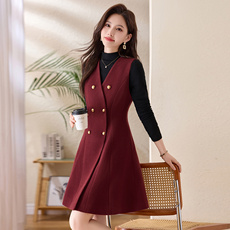 2025秋冬款女童装3-5-8岁宝宝背心连衣裙公主毛呢加厚无袖打底裙