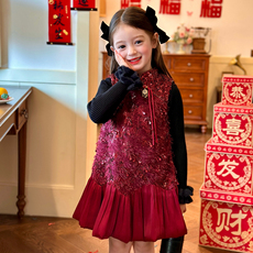 女童新中式背心连衣裙秋冬款演出服装国风设计感新年喜庆旗袍裙子