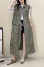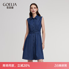 小众翻领无袖不规则设计牛仔马甲女薄料柔软复古收腰显瘦背心裙秋