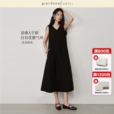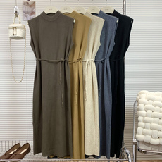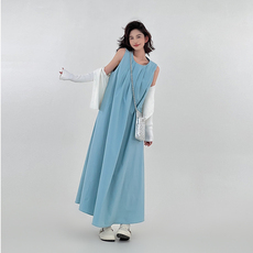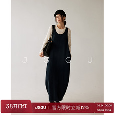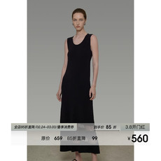 晶咕黑标JGGU【从容弧线】桑蚕丝棉混纺大U领茧型针织背心长裙女
