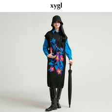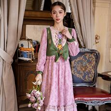复古新中式女连衣裙刺绣马甲裙民族风背心茶服盘扣宽松假两件长裙