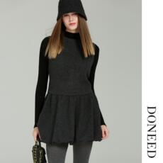DONEED2025冬季新款简约设计感减龄毛呢拼接圆领背心灯笼连衣裙女