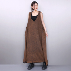 2026春季新款女牛仔背心连衣裙复古文艺V领连帽宽松大码遮肉长裙