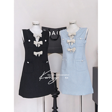 Kerry 富家千金 法式小香风珍珠蝴蝶结连衣裙女高级感无袖背心裙