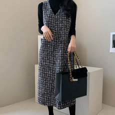 宝诗黎两件套打底小香风连衣裙2026早春气质高级感休闲韩系背心裙