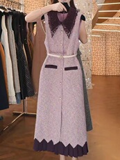 商场同款 摩萨克夏款粗花呢小香风撞色娃娃领背心连衣裙女