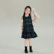 大耳象女童花边格纹背心裙2026春季新款宝儿小众无袖休闲裙子