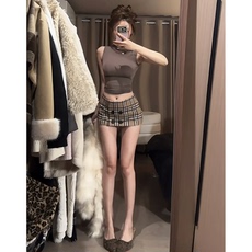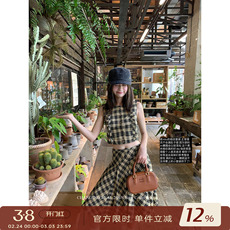 CHANGING REAL 米兰纪事 miu系格纹花边背心半身裙女马甲套装夏