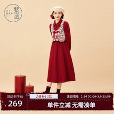 女童红色新年连衣裙小童新中式背心裙加绒宝宝拜年服公主裙套装冬