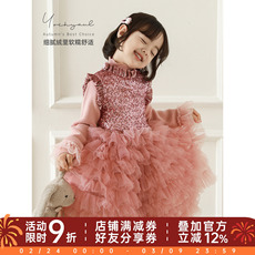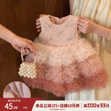 女童连衣裙春秋款小女孩高端礼服粉色背心裙儿童蓬蓬裙生日蛋糕裙