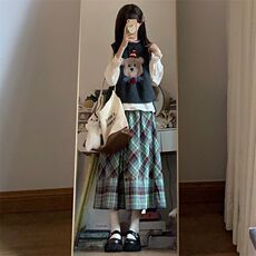 川野栗【小栗】开衫jk套装原创正版格裙背心学院女秋冬叠穿