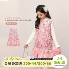 LittleNaive女童连衣裙秋季新款打揽洋气裙子儿童闪闪丝绒背心裙