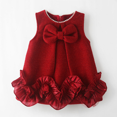 女童背心裙秋冬季红色蝴蝶结儿童装裙子宝宝洋气公主裙加绒马甲裙