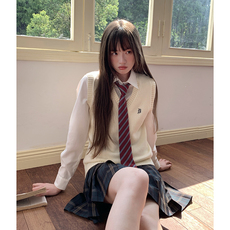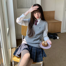 东京岁时记jk制服秋季叠穿马甲纯棉针织背心女上衣百褶裙套装新品